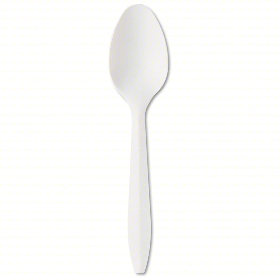 Disposable Spoon: White, Medium-Wt, Plastic, Unwrapped, 1,000 PK (V01788)